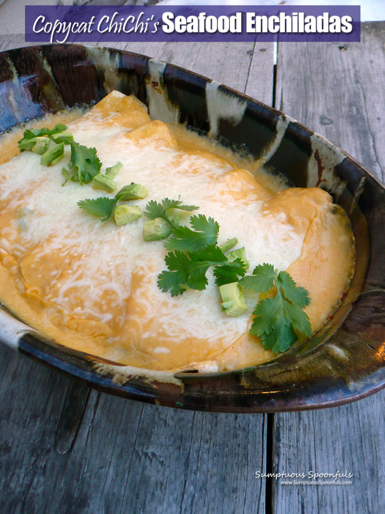 As a teenager and into college, I worked at ChiChi’s Mexican Restaurant and of course, mom and dad would visit me at work. One of the favorite dishes from ChiChi’s was their seafood enchiladas. My dad called me one day, many many years afterwards and told me he had figured out how to copy the ChiChi’s seafood enchilada recipe. I was intrigued and of course had to try them myself! They were amazing.