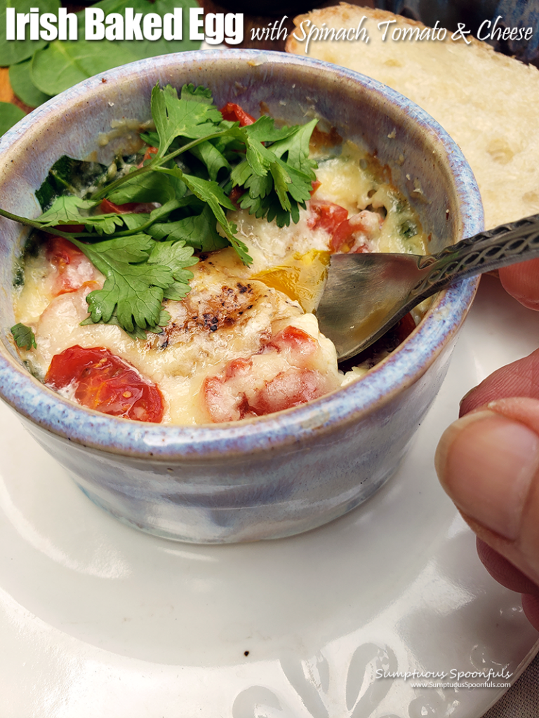 Wake up on St. Patrick’s Day (or whenever) to this super simple Irish Baked Egg with Spinach in a cute little ramekin. A tiny, warm baked treasure just for you. There’s something about a baked egg done right that’s really satisfying.
