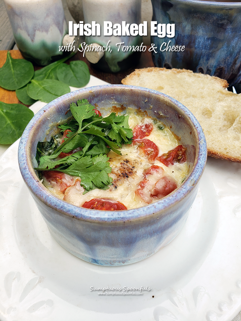Wake up on St. Patrick’s Day (or whenever) to this super simple Irish Baked Egg with Spinach in a cute little ramekin. A tiny, warm baked treasure just for you. There’s something about a baked egg done right that’s really satisfying.