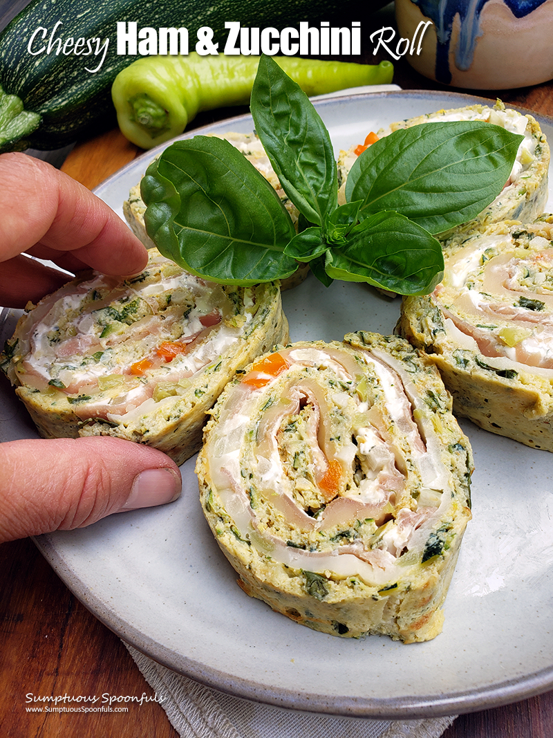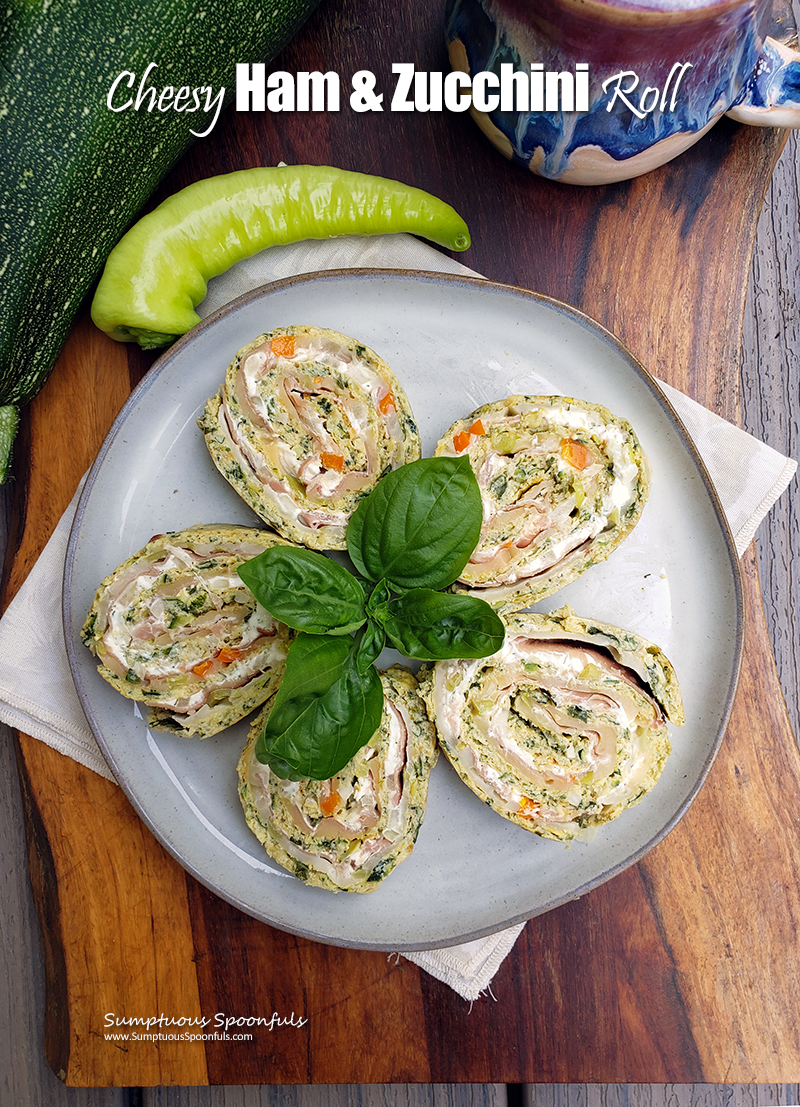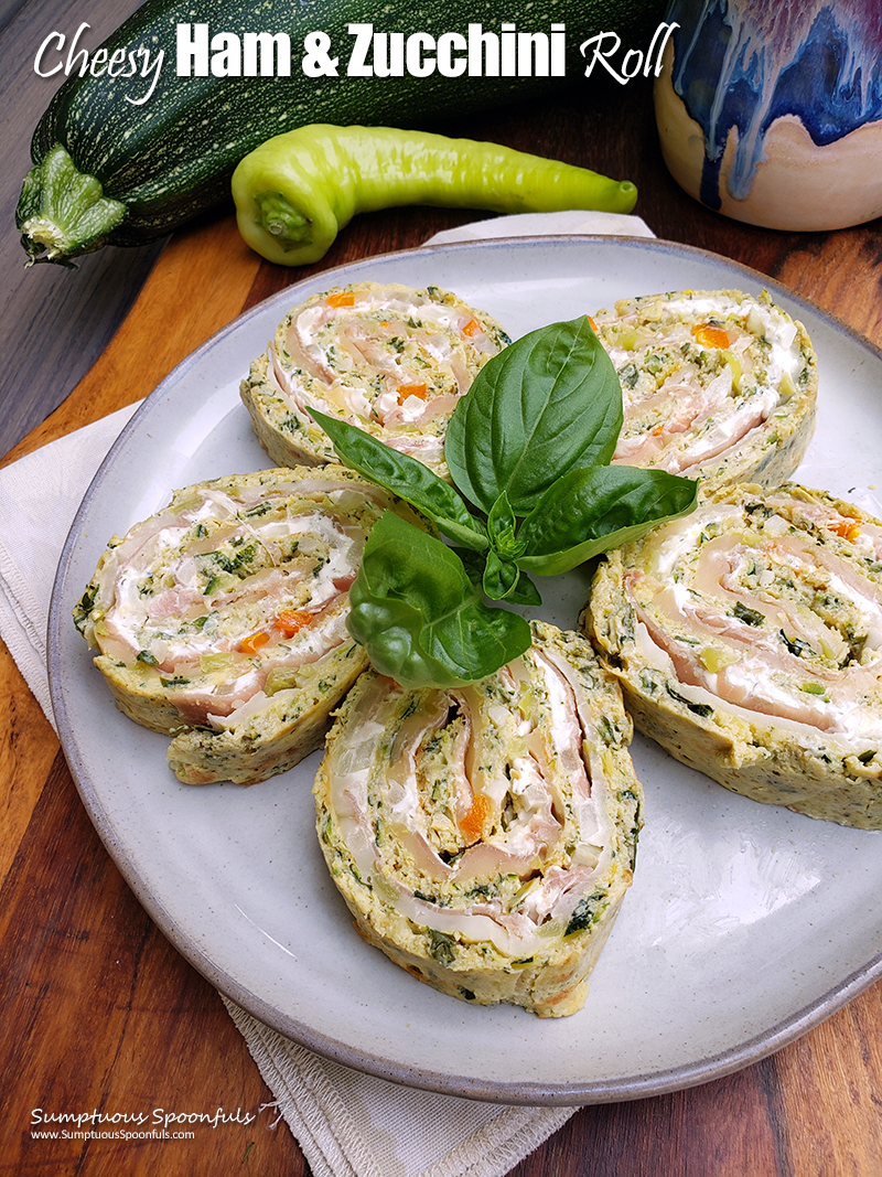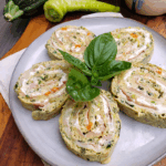 Looking for something different and fun to do with your zucchini? This cheesy ham & zucchini roll is not only pretty, it’s full of good flavors, low in carbs, gluten free and frankly, it’s just plain fun! I think it’s such a delightful and different way to use up your zucchini.
