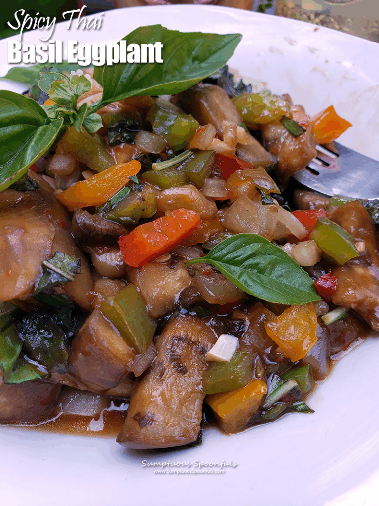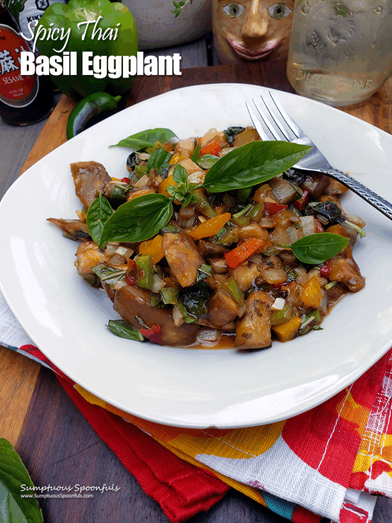 A sweet and spicy Thai style vegetarian dish so rich with umami flavor that it dances on the tongue! This Thai Basil Eggplant dish is so easy to throw together, but it is truly 5-star restaurant worthy. In my humble opinion, it’s the absolute best thing you can make with eggplant. And that’s saying something coming from someone who’s made countless eggplant dishes over the years.